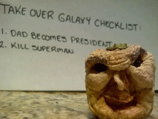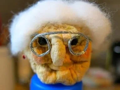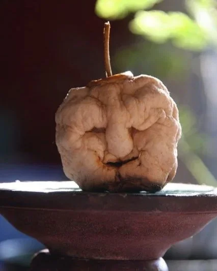 Note from the apple artiste: Extreme premature aging (from tanning with baby oil and tin foil back in the 70s) disintegrated Bea's head. Wear sunscreen, folks.