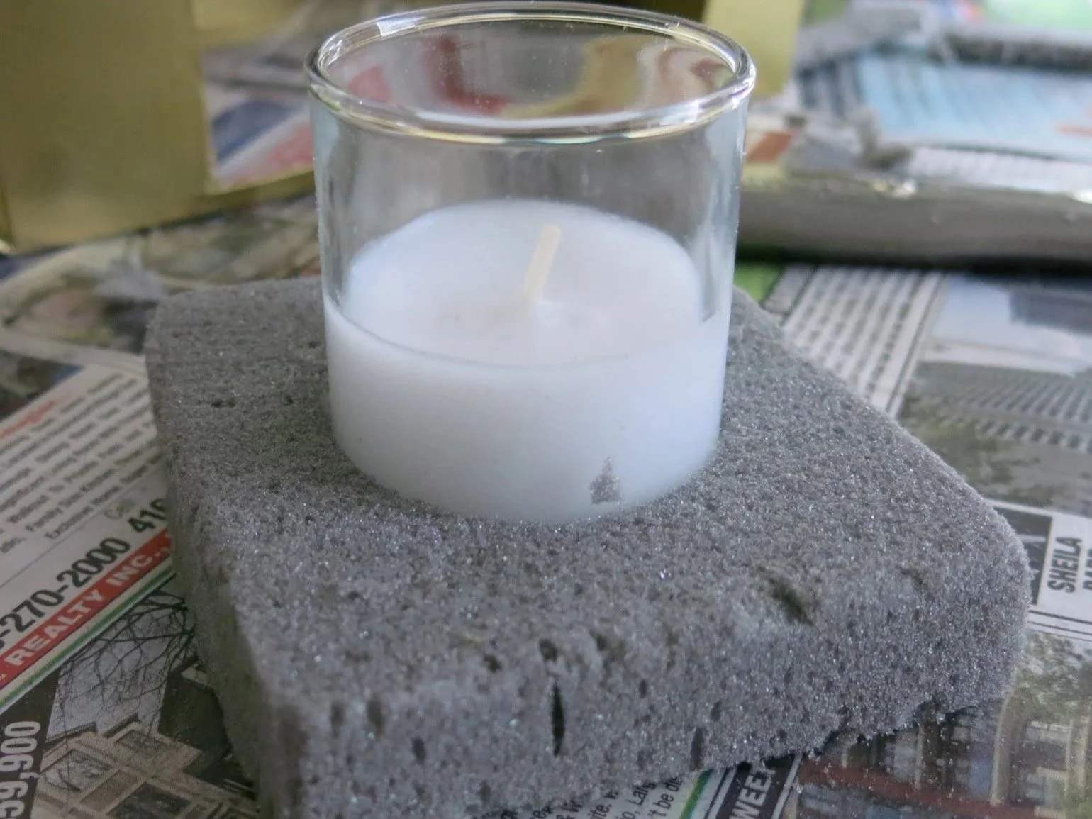 Cut one of those grey foam thingies to fit the bottom of the carton, then cut out a circle in the centre and insert your votive. Set it into the bottom of the carton and add your greenery, bells, etc.