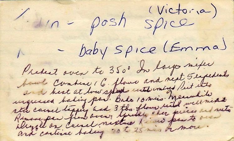 Source: handwritten recipe card. As far as the time frame for the card, all I have to say is, "Zig-a-zig-ah!"