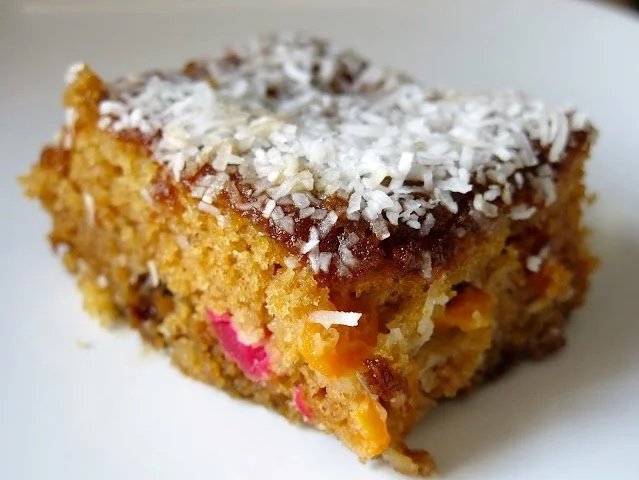 Boil together for 1 minute. Remove from heat and add 1 teaspoon vanilla. Pour over cooled cake in pan while still hot. Sprinkle with ½ cup coconut. This also makes a delicious dessert (see note) served with ice cream, whipped cream or Dream Whip.