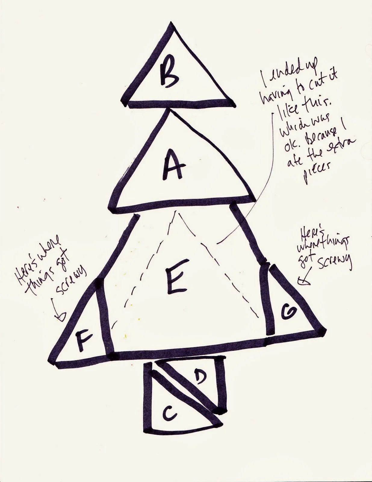 During my recent tour of church bazaars, I bought the Cut-Up Cake Party Book which shows you how to make different shaped cakes like spaceships and turkeys. There was one for a Christmas tree and I thought, “Looks easy enough.”