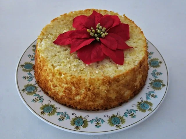 True, it’s a little on the chewy side, but it's moist and what more can you expect from a two-ingredient cake? I got a little Martha Stewartson with mine and put a poinsettia in the middle. If you do the same, make sure you tell your guests not to eat the poinsettia. They may look good, but they leave an awful aftertaste. Trust me on this one.
